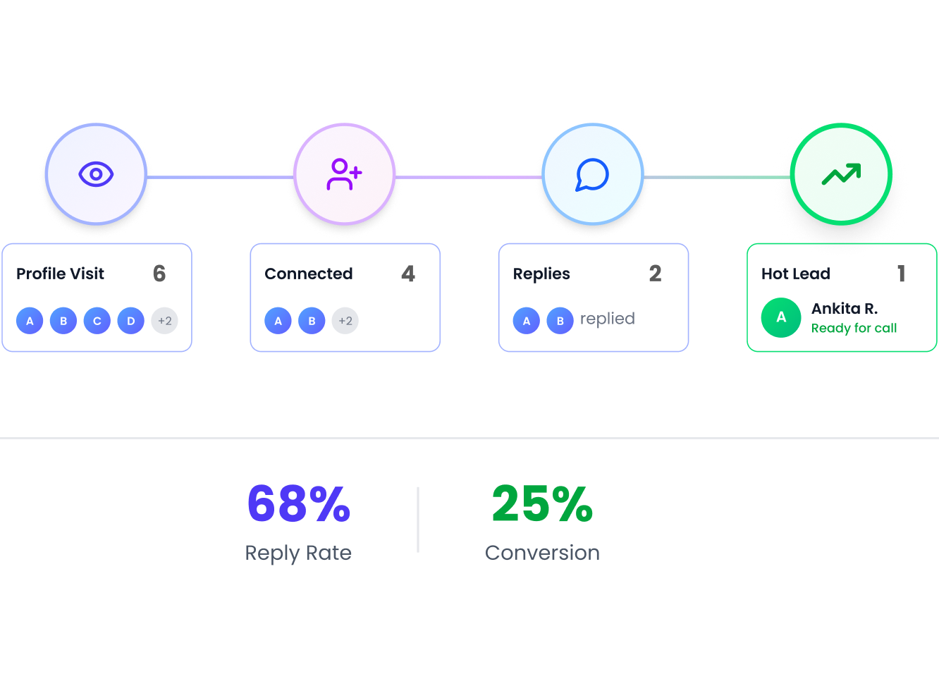 The analytics dashboard shows acceptance rates, reply rates, message open rates, and overall campaign performance in real time — all in one place.