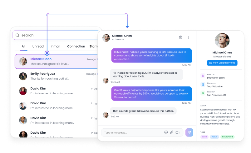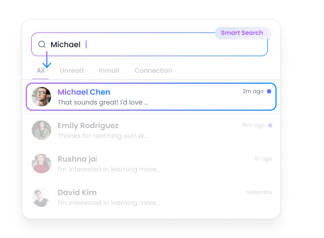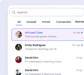 The FlowKon Unified Inbox is a centralized place where you can manage all your LinkedIn conversations. It brings together messages, connection requests, and InMail responses so you can view and respond to everything from one organized dashboard.